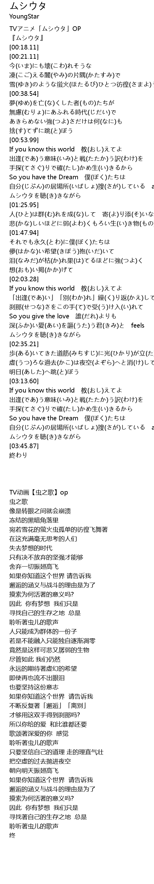 | [00:03.11] | TVアニメ「ムシウタ」OP |