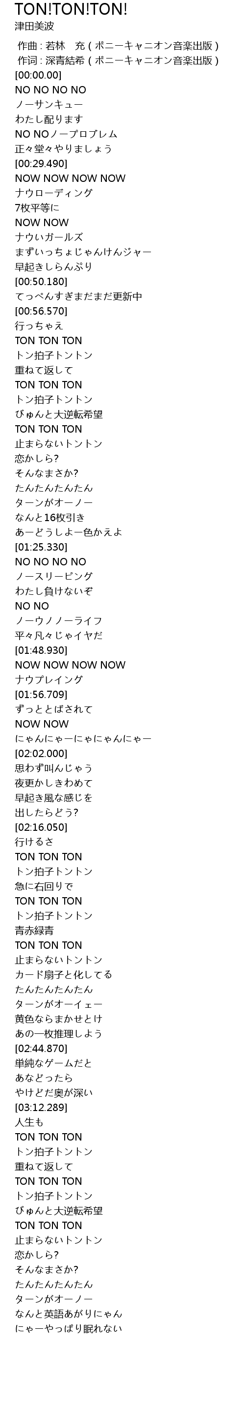 | [00:00.000] | 作词 : 深青結希(ポニーキャニオン音楽出版) |