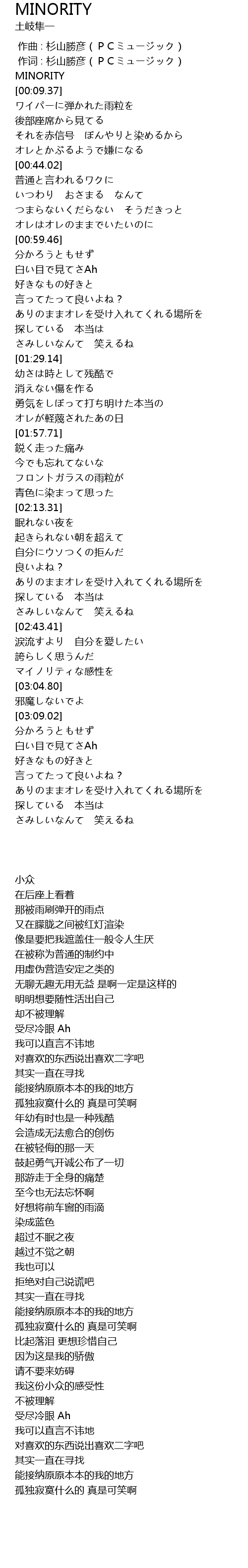 | [00:03.42] | MINORITY |
