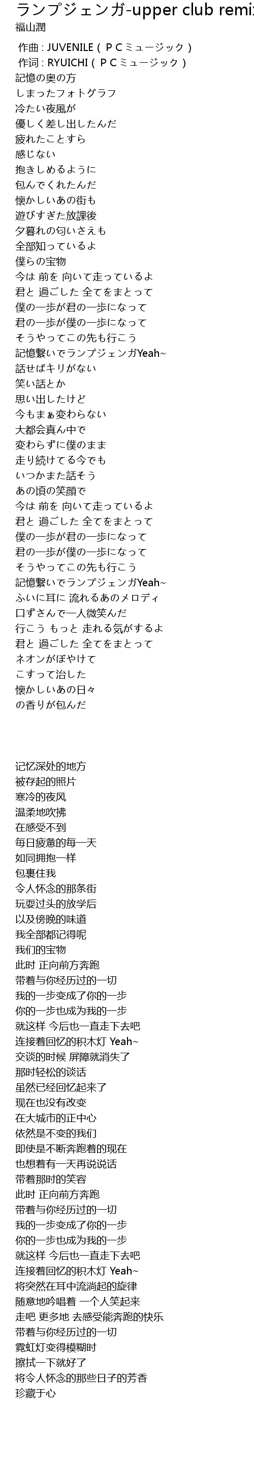 | [03:02.530] | 記憶繋いでランプジェンガYeah~ |