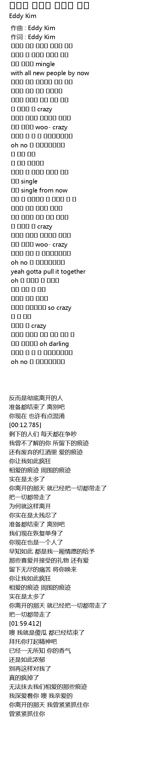 | [00:01.000] | 作词 : Eddy Kim |