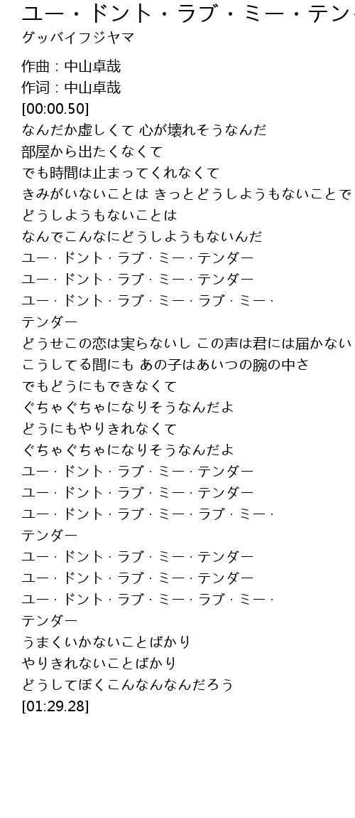 | [01:04.92] | ユー · ドント · ラブ · ミー · ラブ · ミー · テンダー |