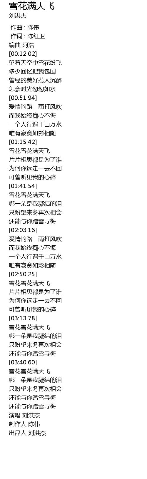 | [03:41.20] | xuě huā xuě huā mǎn tiān fēi |
