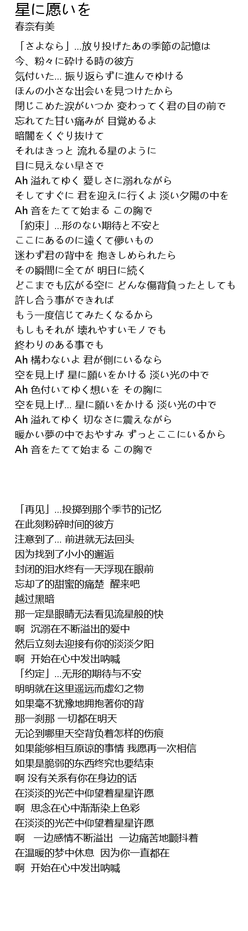 | [03:59.65] | 空を見上げ... 星に願いをかける 淡い光の中で |