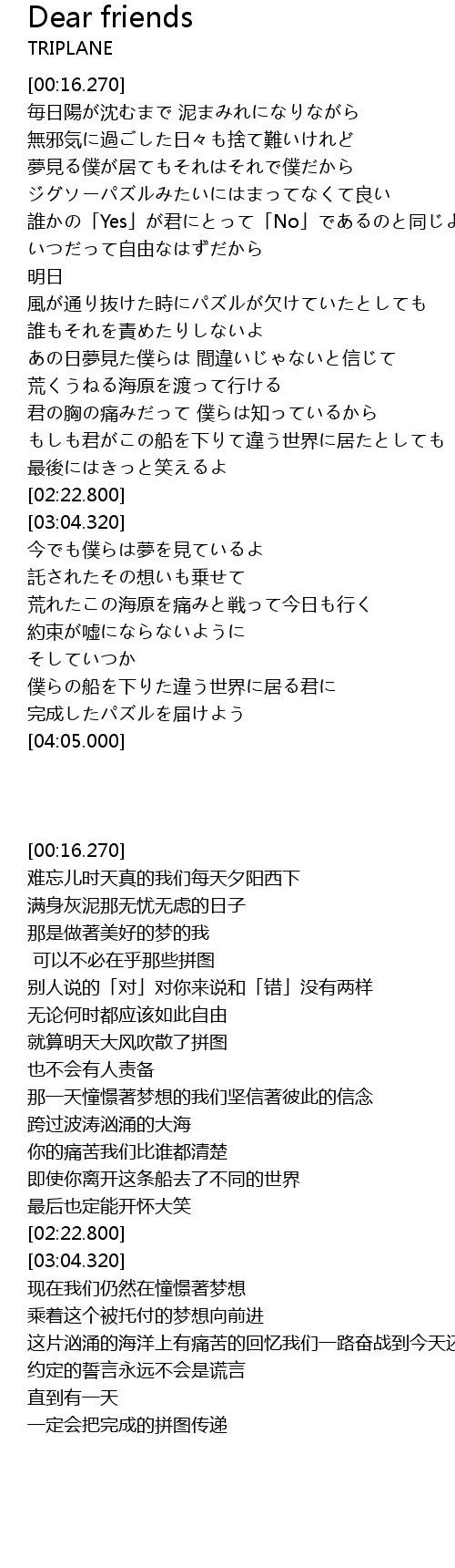 | [03:43.680] | そしていつか 僕らの船を下りた違う世界に居る君に |