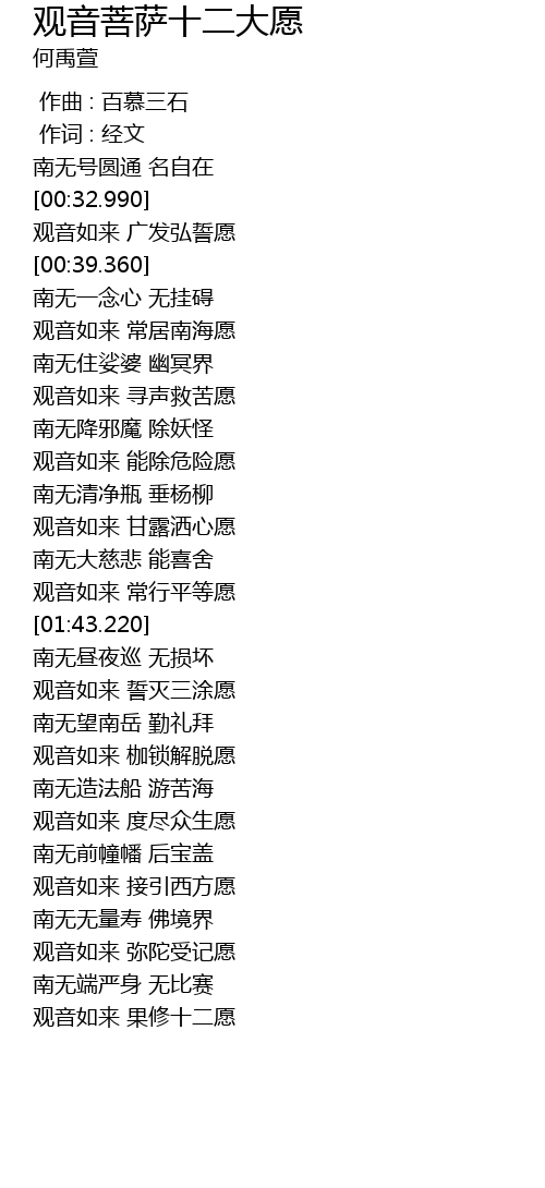 | [03:17.850] | guān yīn rú lái guǒ xiū shí èr yuàn |