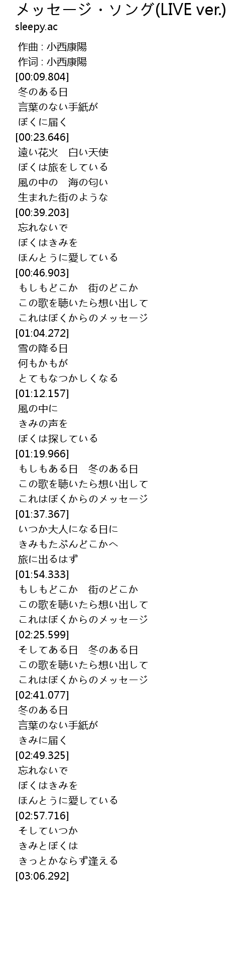 | [01:00.787] | これはぼくからのメッセージ |