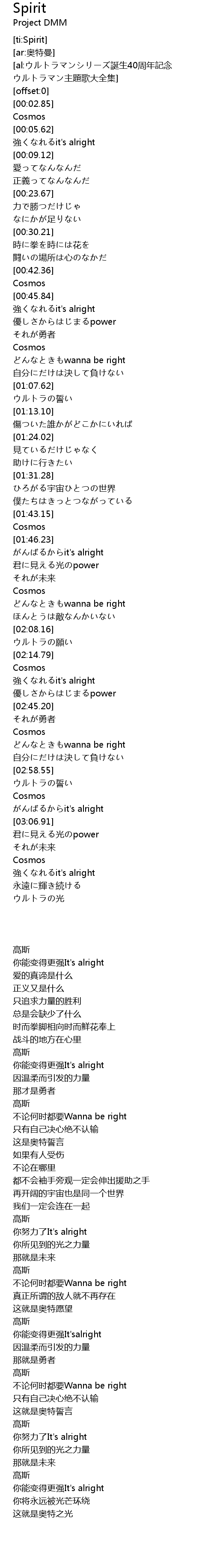 | [01:31.88] | ひろがる宇宙ひとつの世界 |