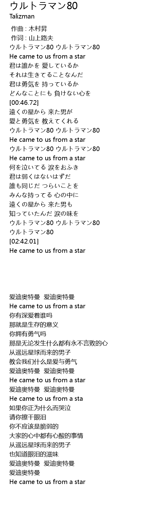 | [02:30.59] | ウルトラマン80 ウルトラマン80 |