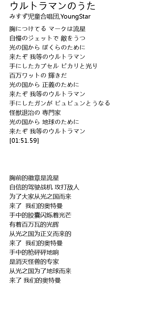 | [00:26.72] | 来たぞ 我等のウルトラマン |