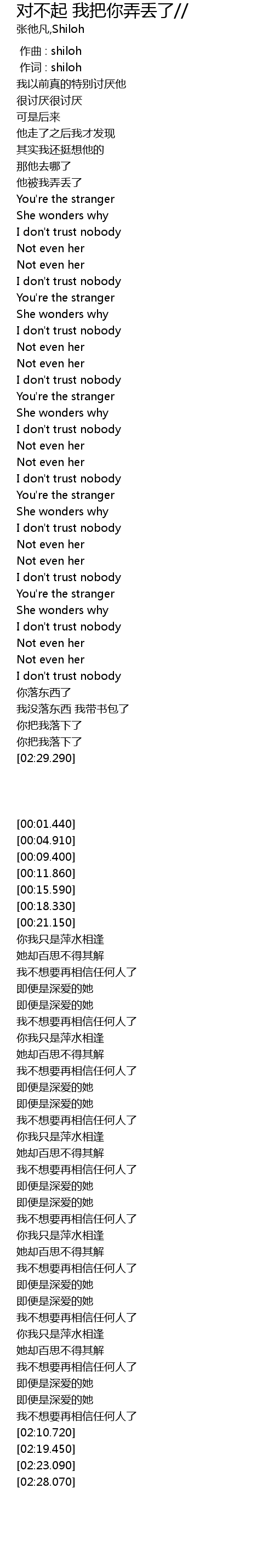 | [00:21.150] | 他被我弄丢了 |