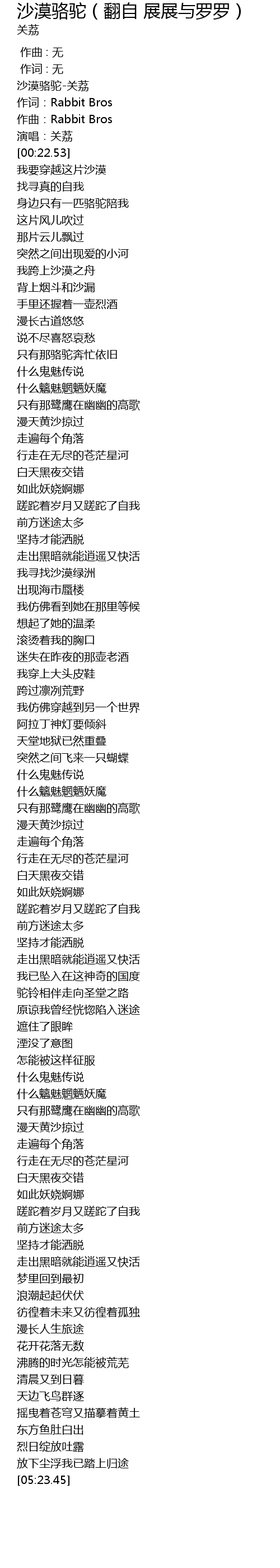 | [00:05.46] | 沙漠骆驼-关荔 |