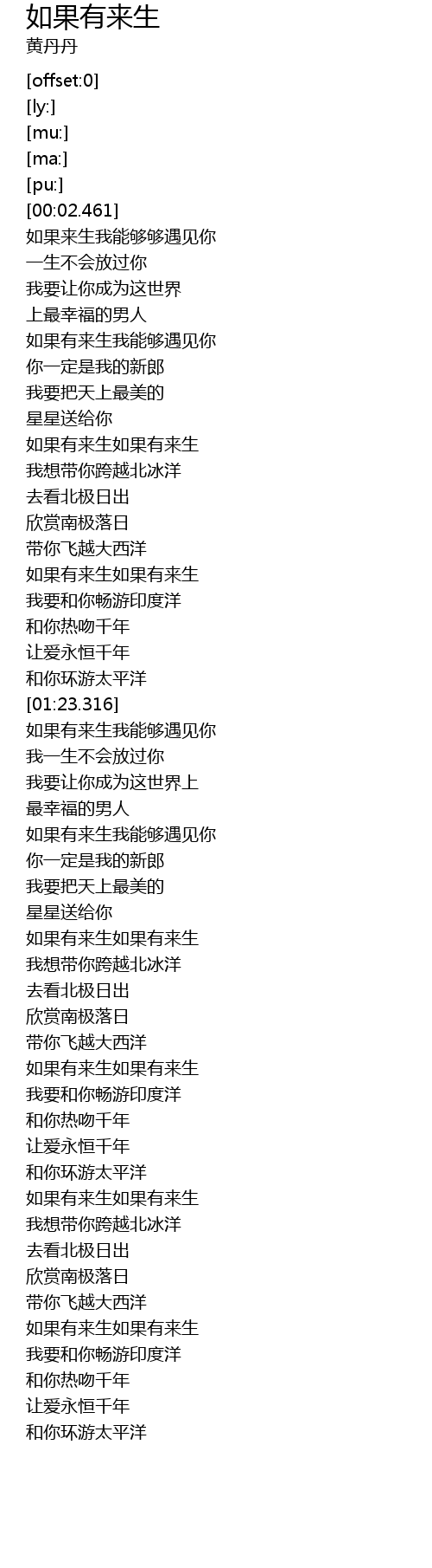 | [00:49.734] | rú guǒ yǒu lái shēng rú guǒ yǒu lái shēng |