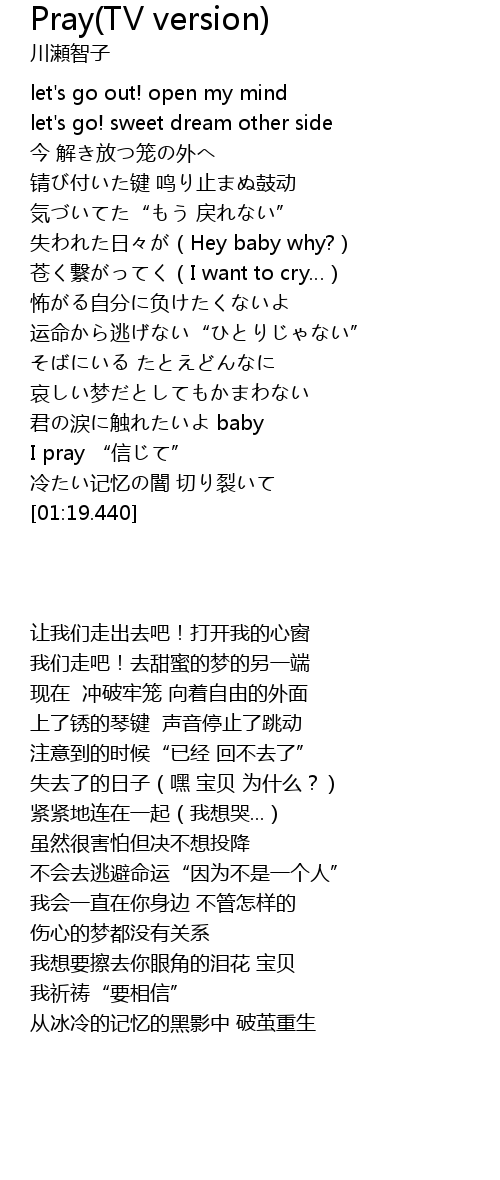 | [01:10.260] | I pray " xìn" |