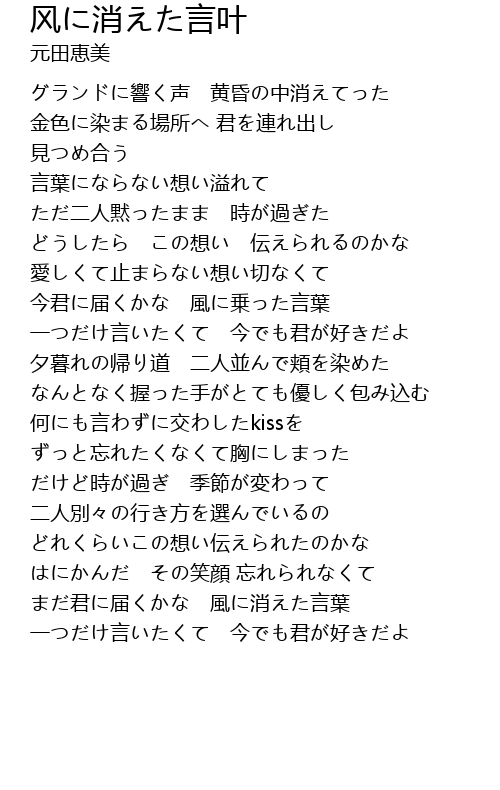 | [01:23.000] | 今君に届くかな 風に乗った言葉 |