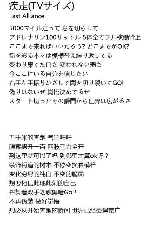 | [00:08.10] | 5000マイル走って 息を切らして |