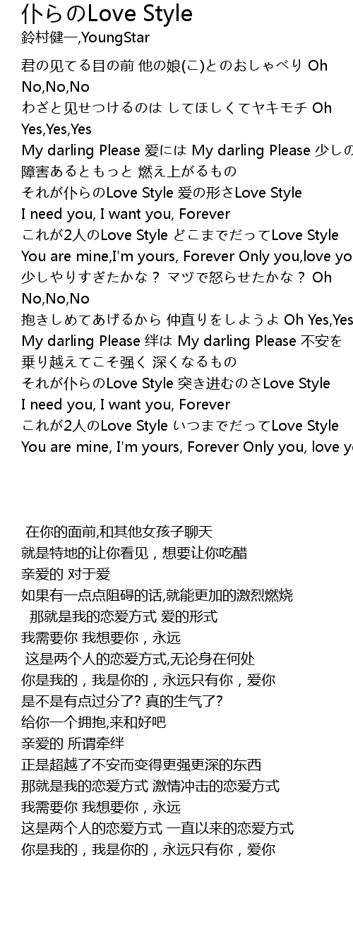 | [02:25.67] | これが2人のLove Style いつまでだってLove Style |