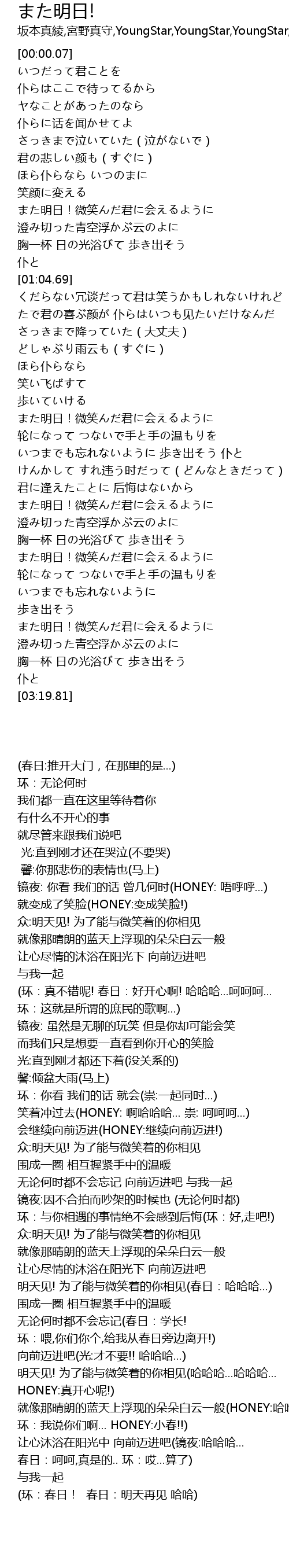 | [02:56.19] | また明日!微笑んだ君に会えるように |