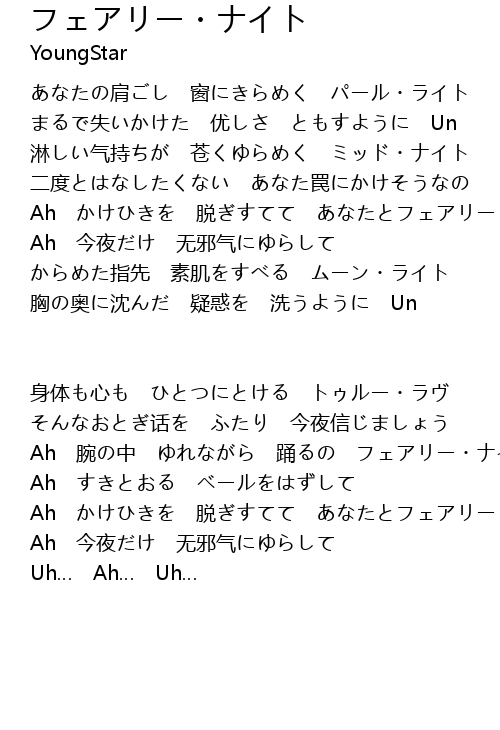 | Ah 腕の中 ゆれながら 踊るの フェアリー・ナイト | |