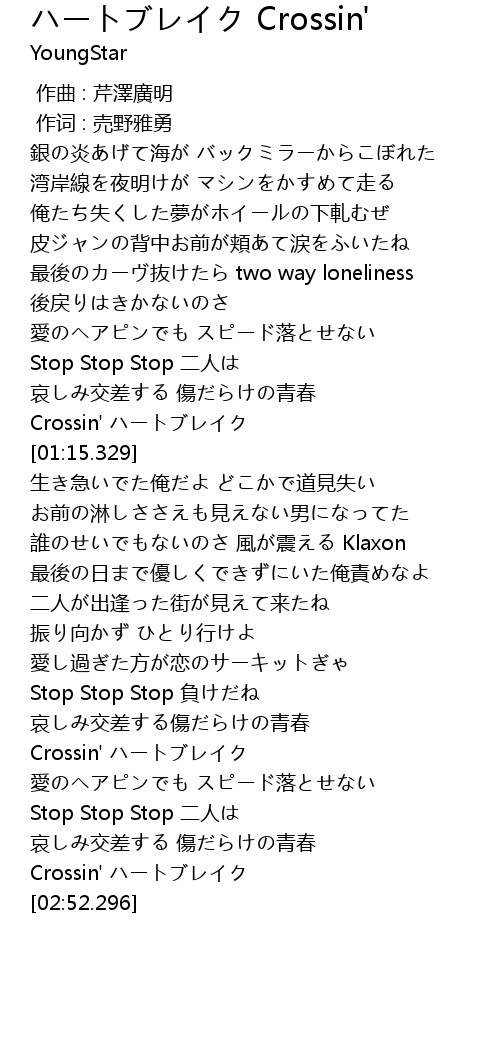 | [02:16.400] | 哀しみ交差する傷だらけの青春 |