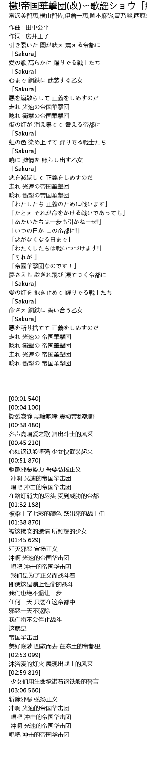 | [02:01.239] | 唸れ 衝撃の帝国華撃団 |