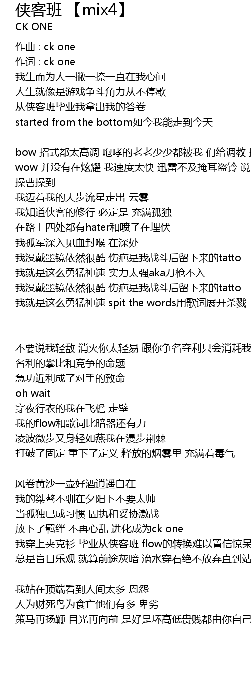 | 不要说我轻敌 消灭你太轻易 跟你争名夺利只会消耗我精力 | |