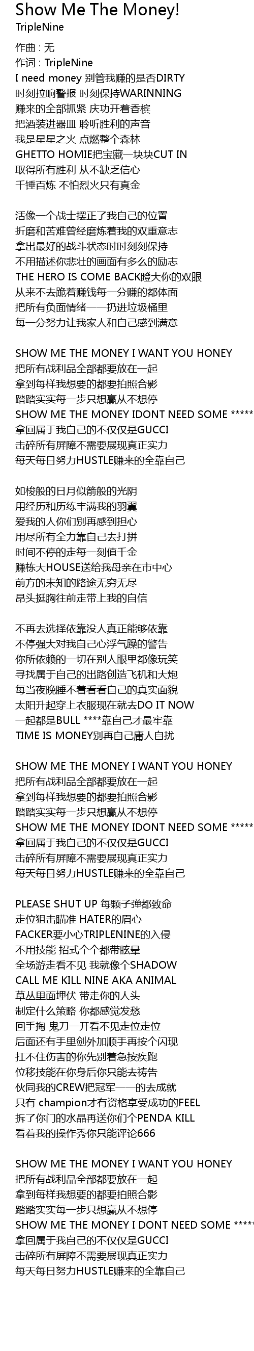 | SHOW ME THE MONEY I DONT NEED SOME | |