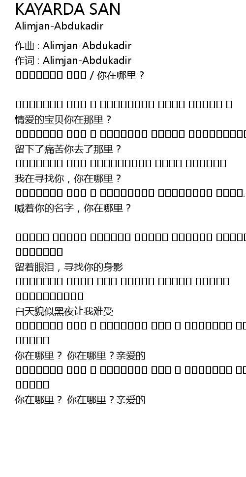 | 作词 : Alimjan-Abdukadir | |