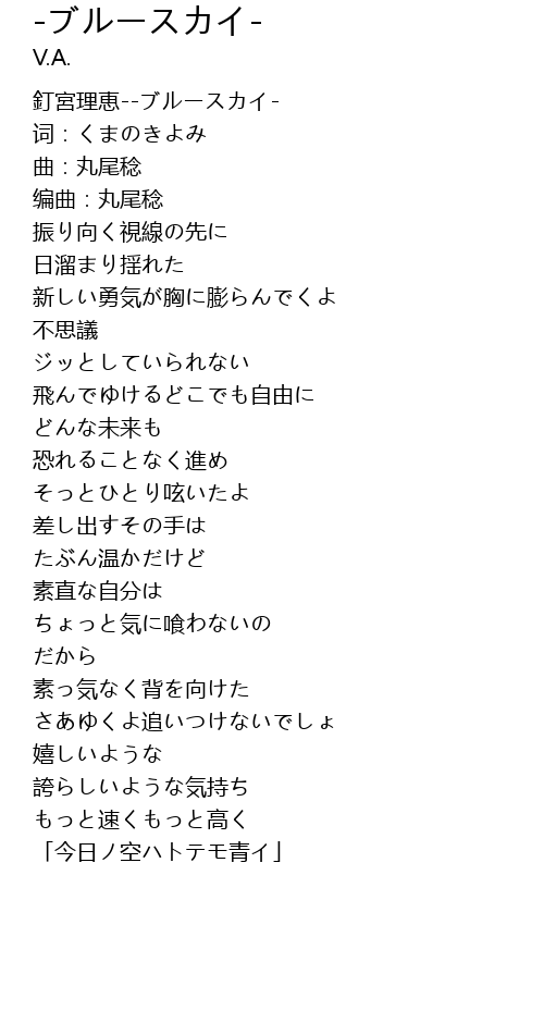 | [00:00.113] | 釘宮理恵--ブルースカイ- |