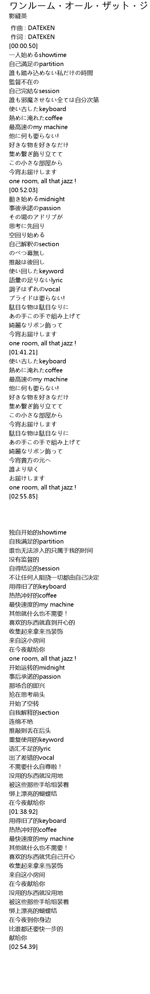 | Song | ワンルーム・オール・ザット・ジャズ |