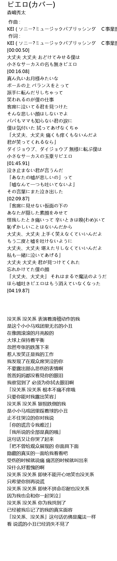 | [04:00.77] | ほら嘘吐きピエロはもう消えていなくなった |