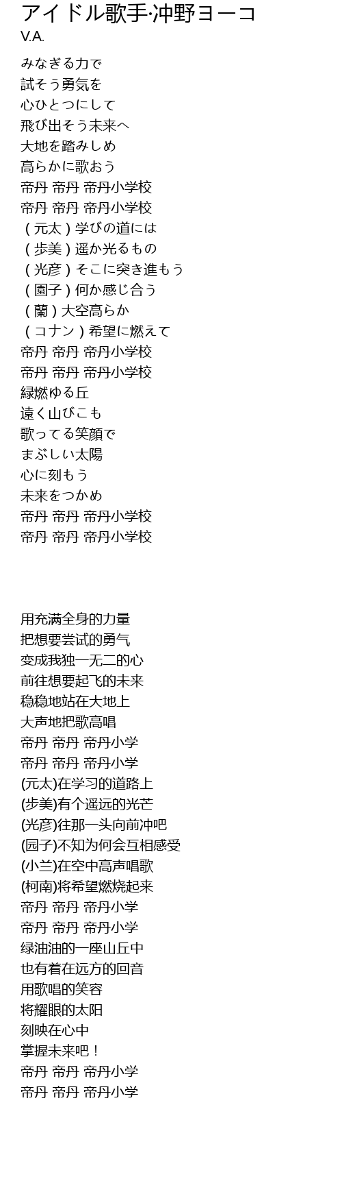 | [00:44.800] | 帝丹 帝丹 帝丹小学校 |