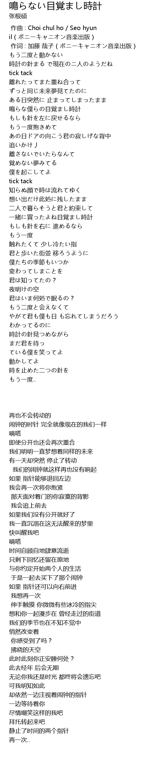 | [01:52.78] | 一緒に買ったよね目覚まし時計 |