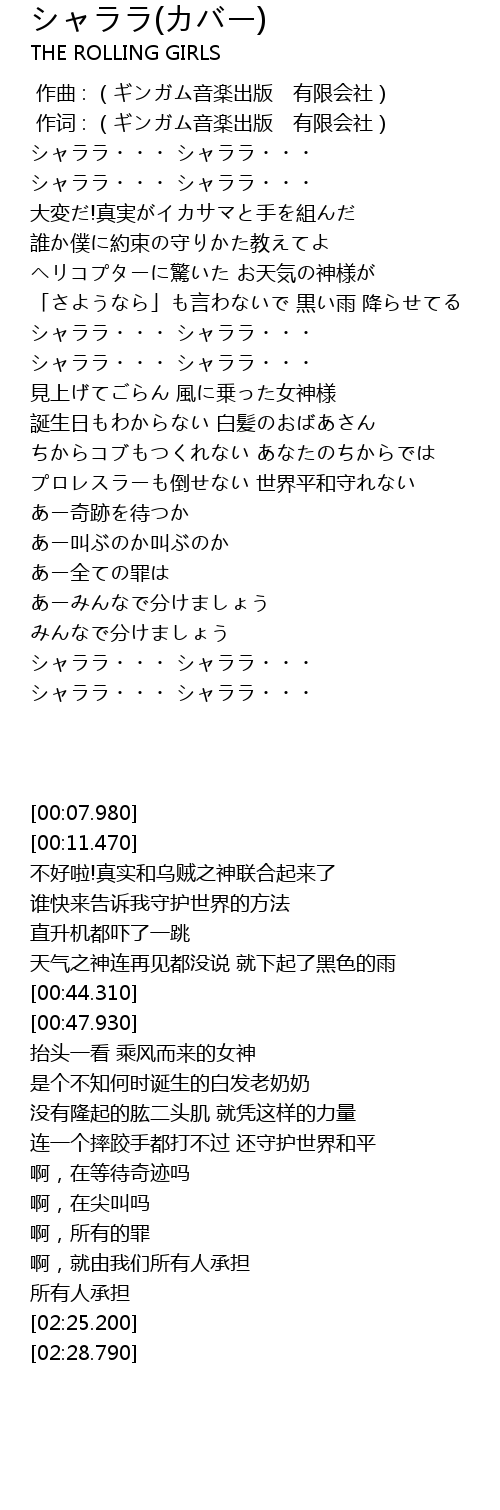 | [02:25.200] | シャララ・・・ シャララ・・・ |