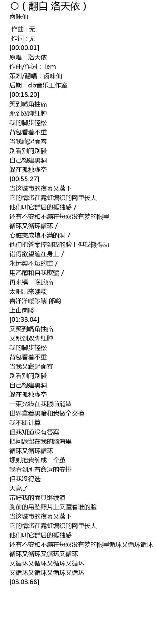 | [03:01.13] | yòu xún huán yòu xún huán yòu xún huán yòu xún huán |