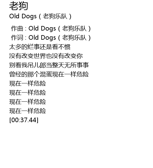 | [00:00.672] | 作词 : Old Dogs(老狗乐队) |