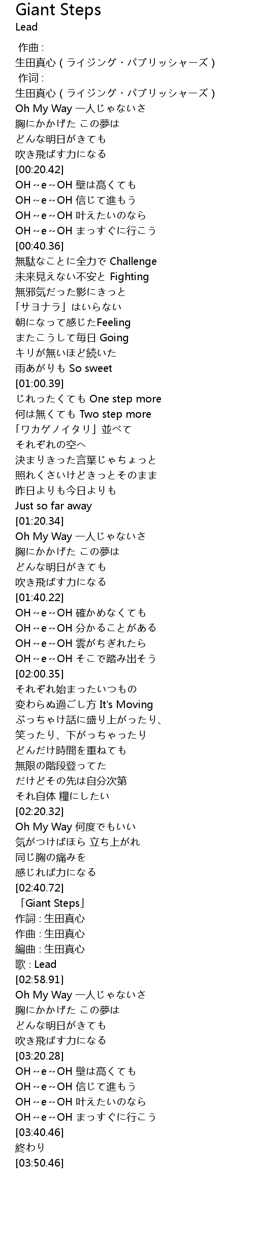 | [03:00.91] | Oh My Way 一人じゃないさ |