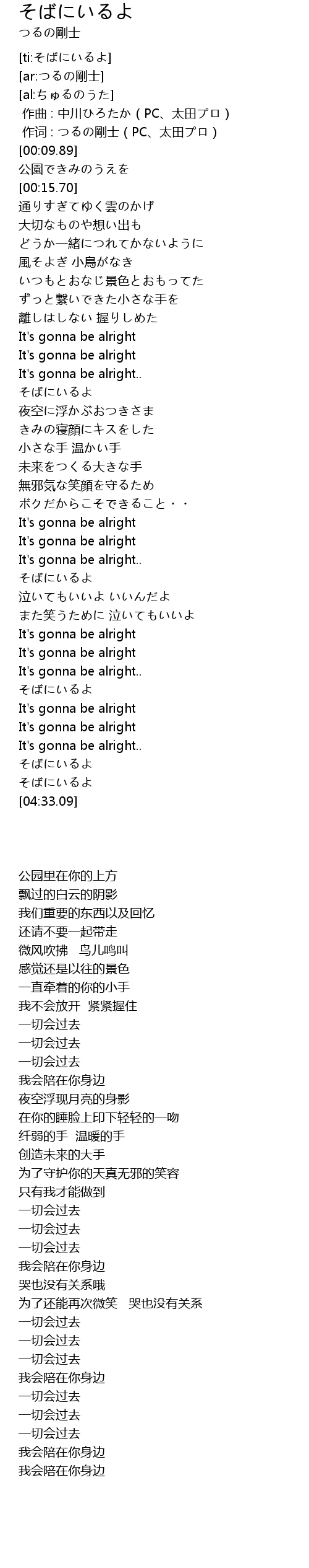 | [00:01.000] | 作词 : つるの剛士(PC、太田プロ) |
