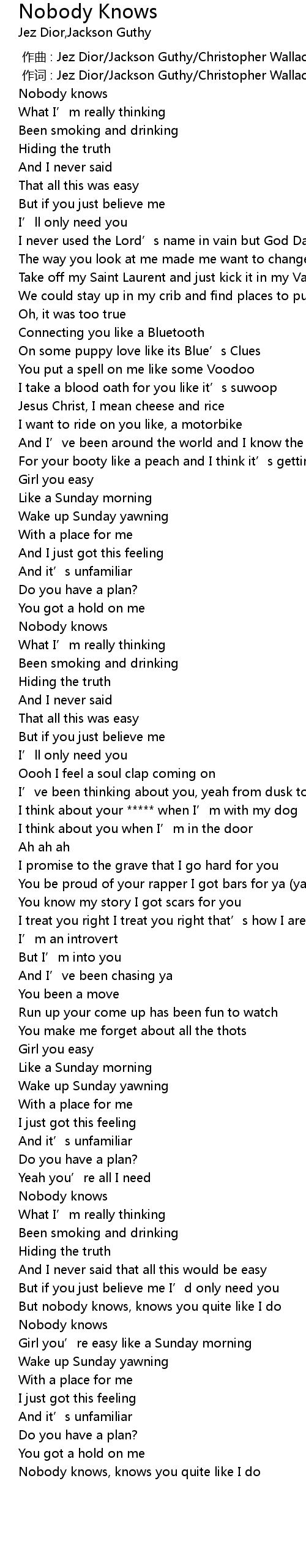 | [03:00.61] | Nobody knows |