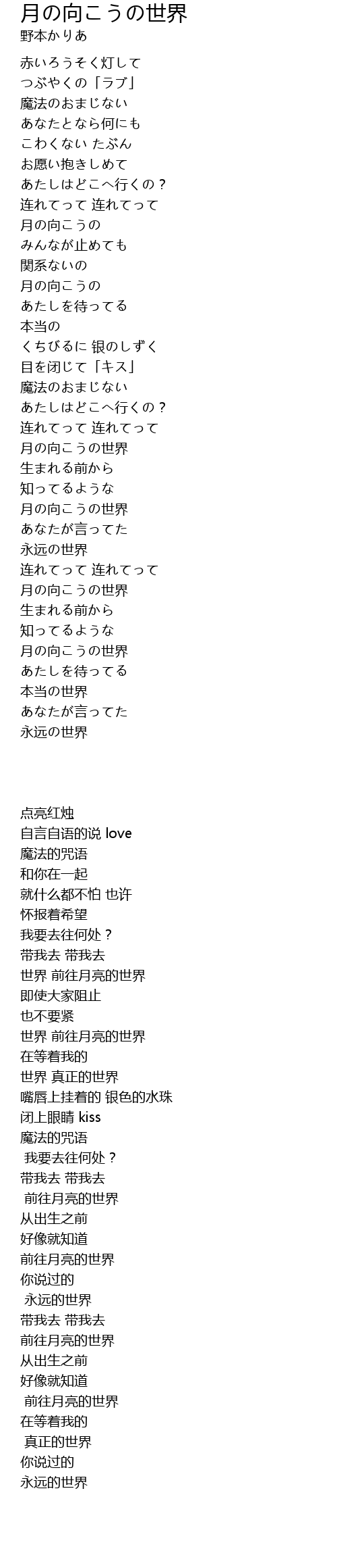 | [02:14.69] | yǒng yuǎn shì jiè |