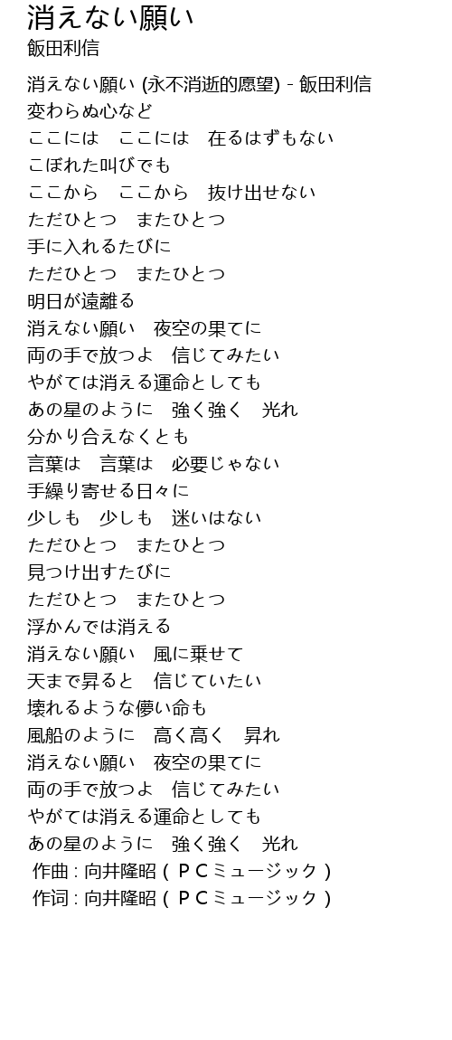 | [00:05] | 消えない願い (永不消逝的愿望) - 飯田利信 |