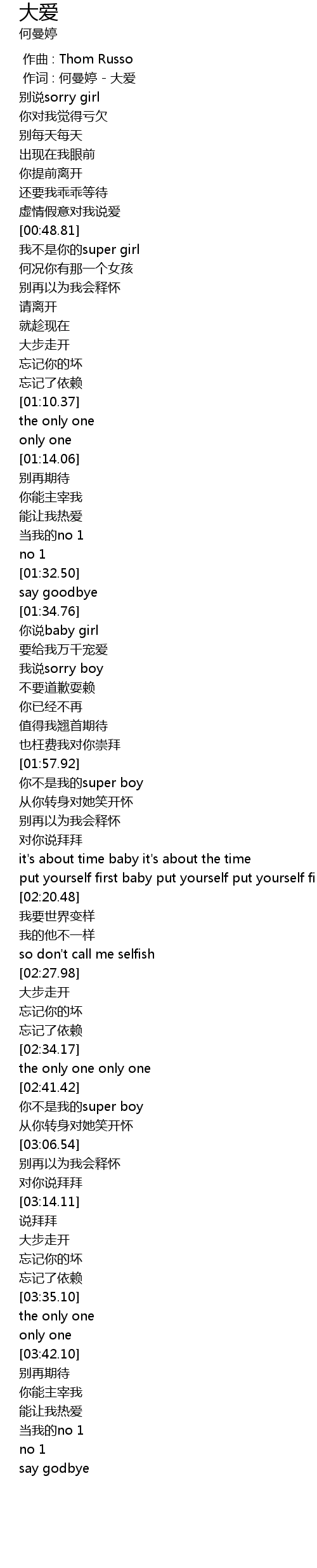 | [00:01.00] | 作词 : 何曼婷 - 大爱 |