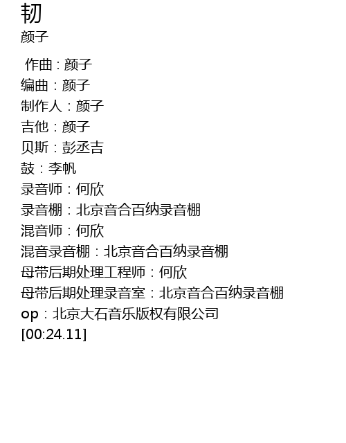| [00:11.17] | 编曲:颜子 |
