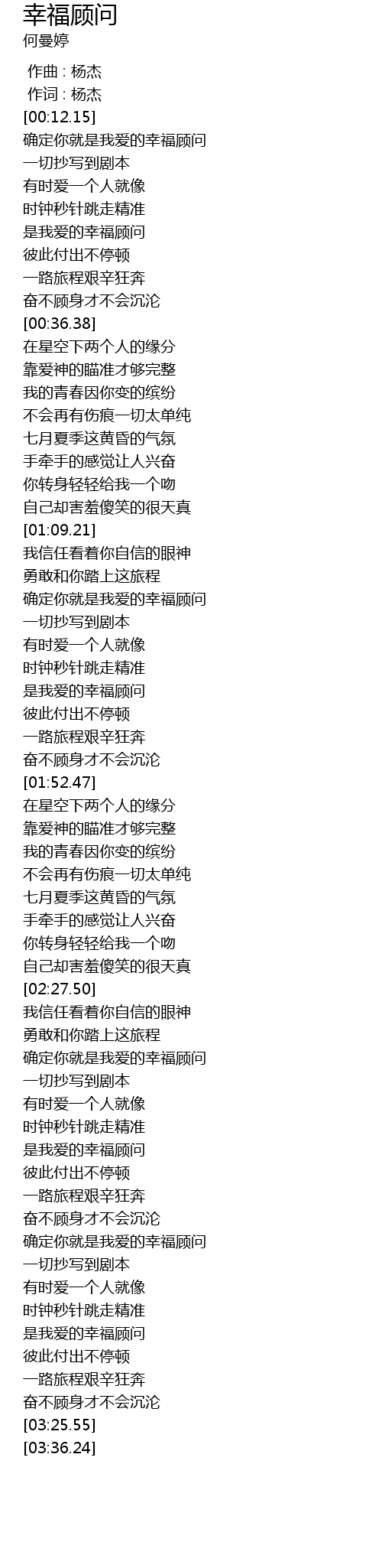 | [02:38.19] | 确定你就是我爱的幸福顾问 |