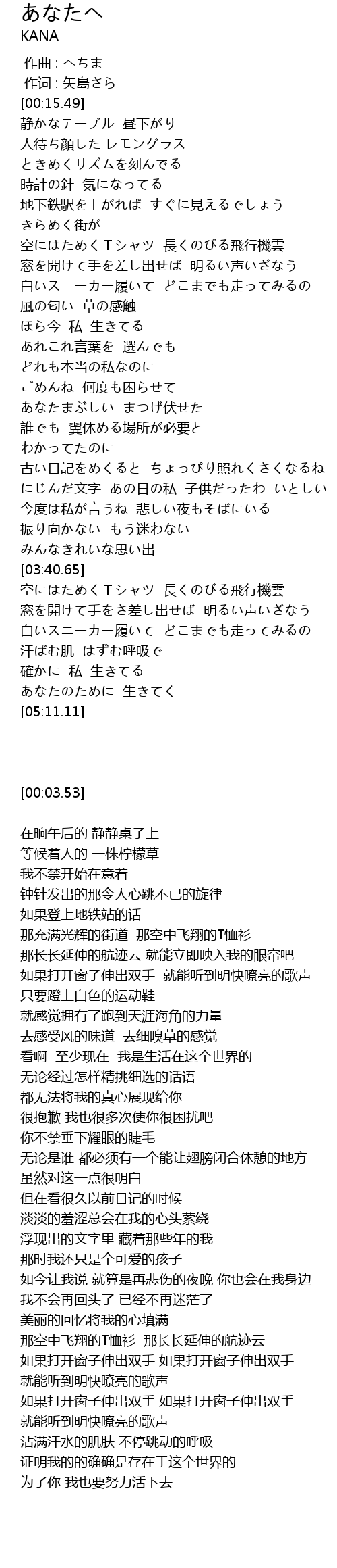 | [05:03.53] | あなたのために 生きてく |