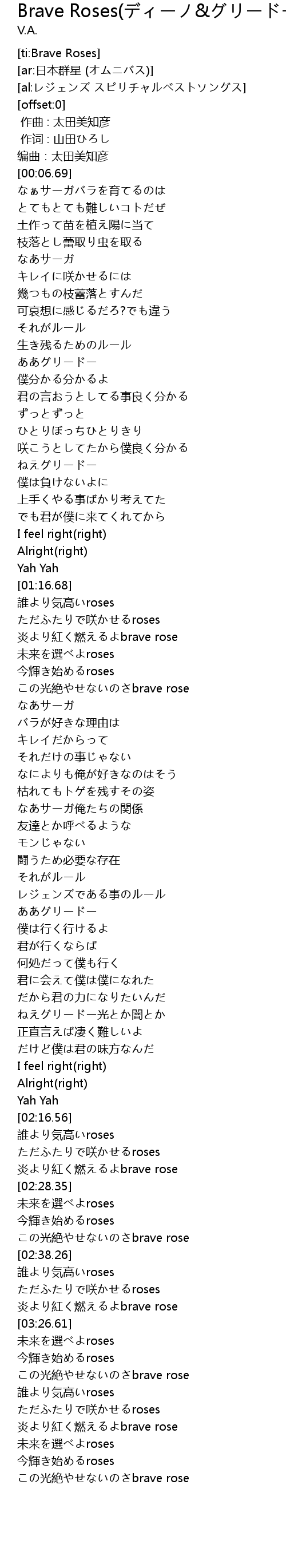 | [03:31.57] | この光絶やせないのさbrave rose |
