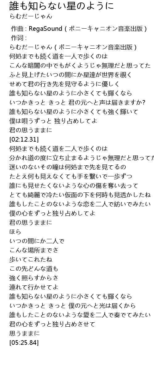 | [04:35.03] | 誰も知らない星のように小さくても輝くなら |