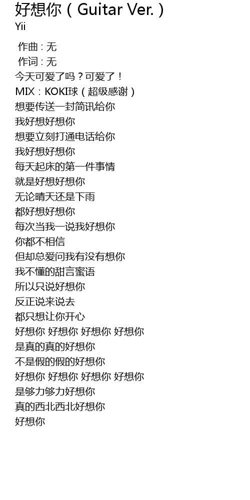 | [00:42.88] | 好想你 好想你 好想你 好想你 |
