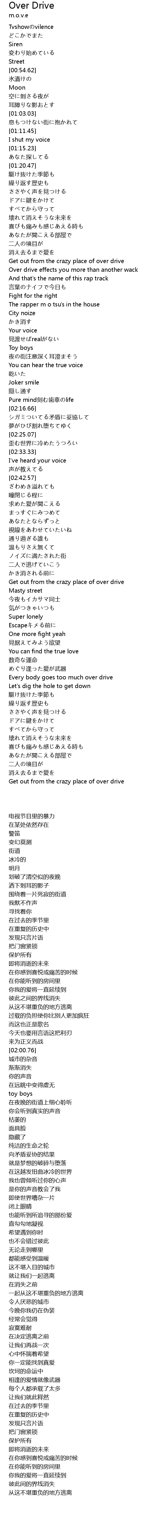 | [01:50.04] | Get out from the crazy place of over drive |