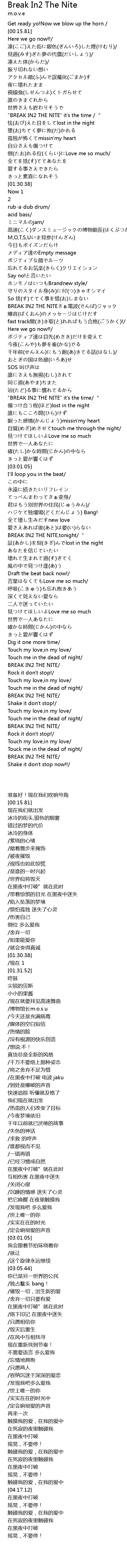 | [01:53.43] | BREAK IN2 THE NITE diàn bō |